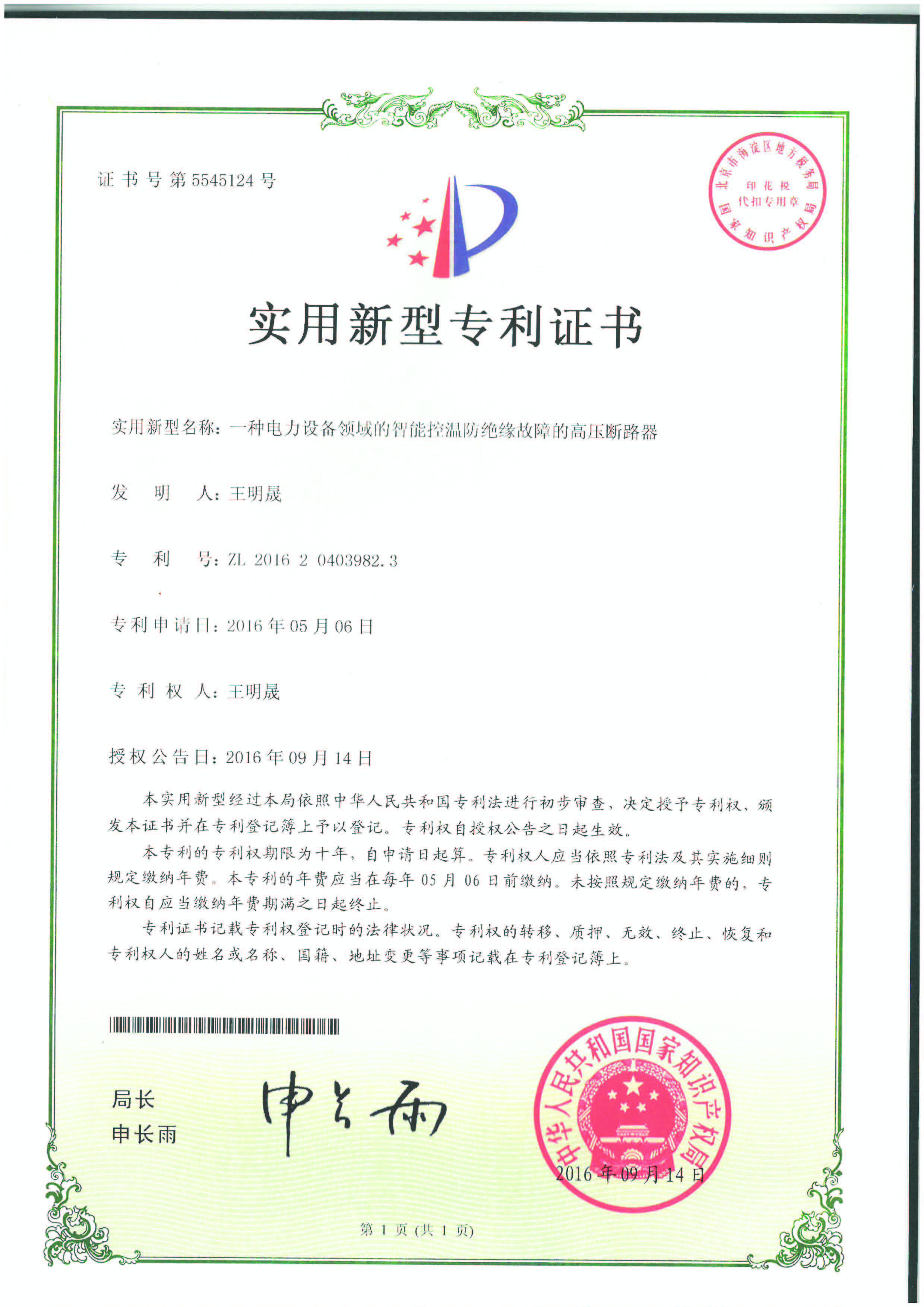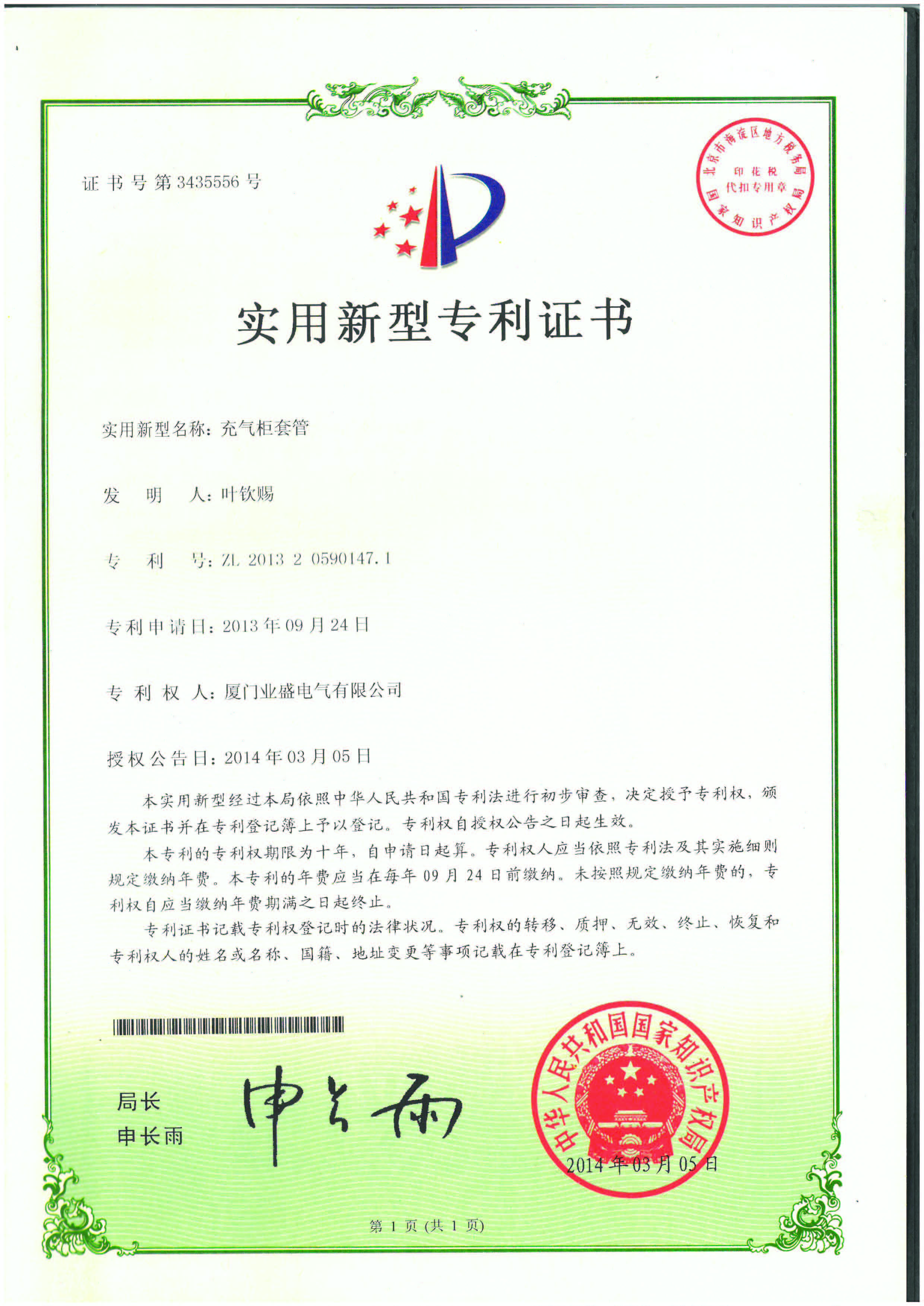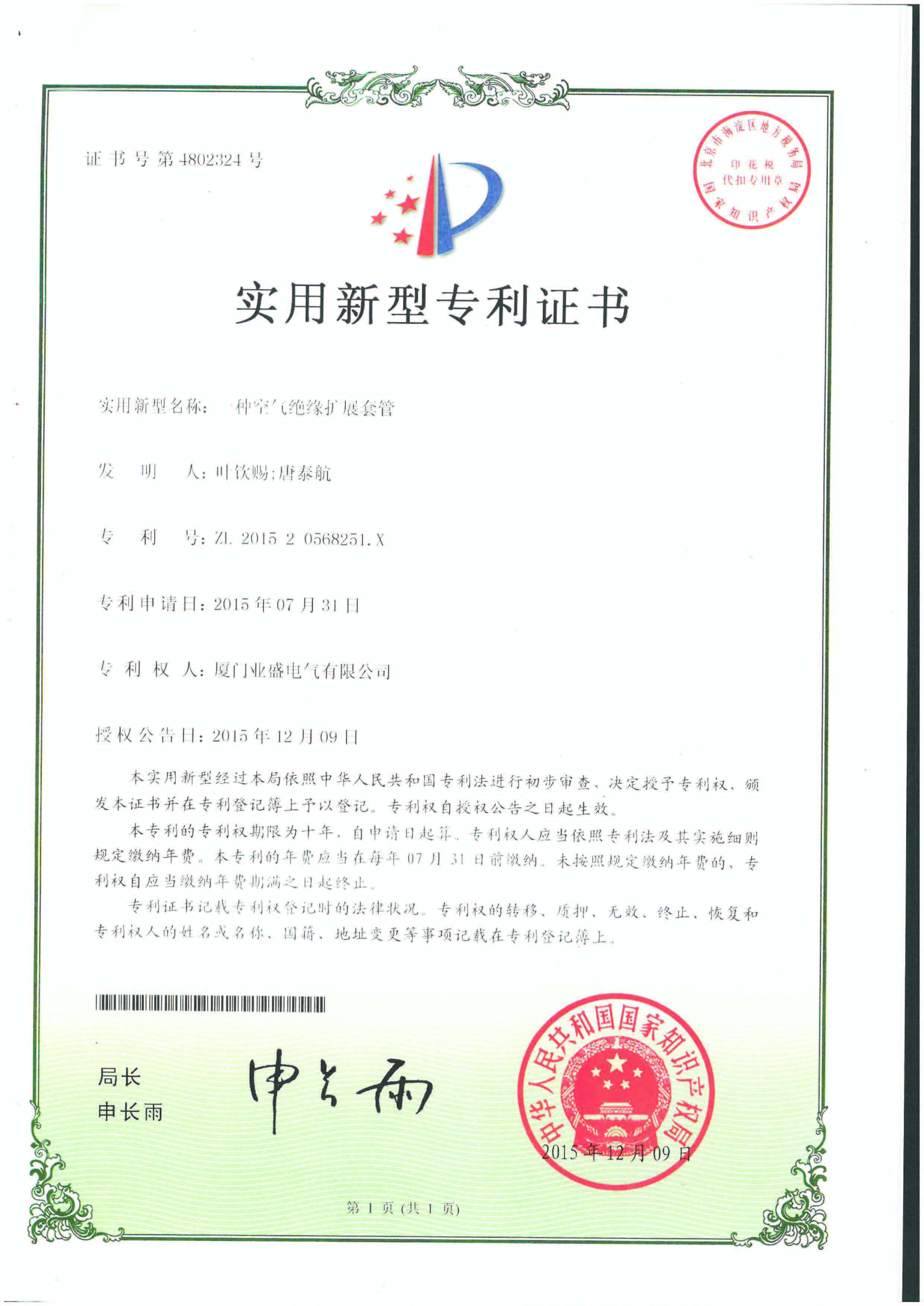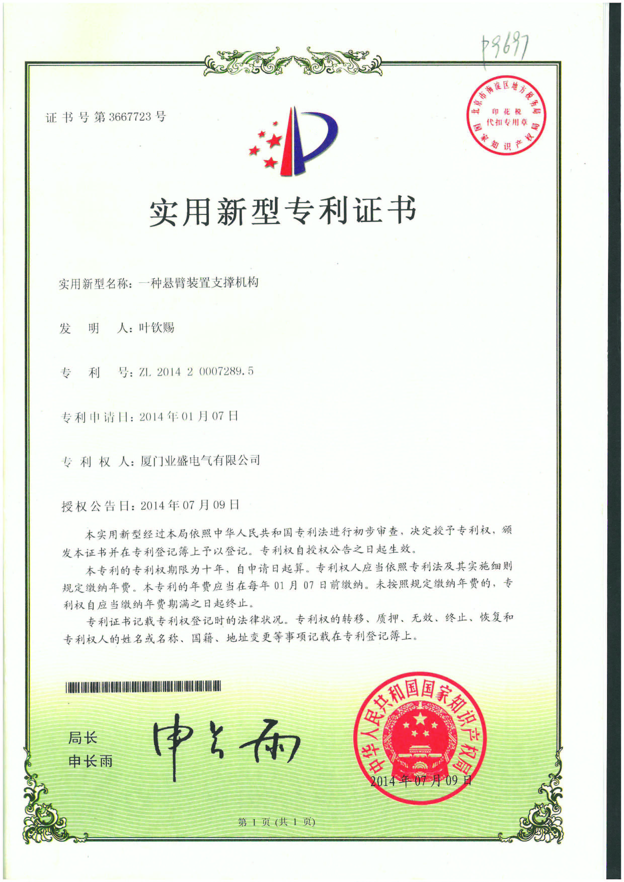 實用新型專利證書